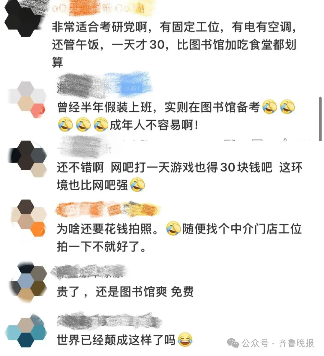 有网友认为,去“假装上班公司”,经济实惠,非常方便。也有网友表示不理解,认为“去这里不如去图书馆”。